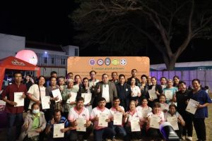 รองศาสตราจารย์ ดร.สมบัติ คชสิทธิ์ อธิการบดี มอบหมายให้ ผู้ช่วยศาสตราจารย์ ดร.ชัยวุฒิ เทโพธิ์ รองอธิการบดี เป็นผู้แทนมหาวิทยาลัยฯ พร้อมด้วยศูนย์ AFCC โดย ผศ.ดร.สุภณิดา พัฒธร หัวหน้าโคงการศูนย์ AFCC VRU ร่วมกับสำนักงานเกษตรอำเภอคลองหาด มอบประกาศนียบัตรคุณวุฒิวิชาชีพ “ผู้ปฏฺิบัติงานคัดแยกคุณภาพชมพู่” ระดับ 3 และ 4 ให้กับพี่น้องเกษตรกรสระแก้ว ในงานชมพู่หวานและของดีอำเภอคลองหาด ประจำปี 2569