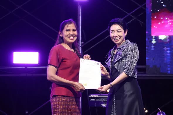 รองศาสตราจารย์ ดร.สมบัติ คชสิทธิ์ อธิการบดี มอบหมายให้ ผู้ช่วยศาสตราจารย์ ดร.ชัยวุฒิ เทโพธิ์ รองอธิการบดี เป็นผู้แทนมหาวิทยาลัยฯ พร้อมด้วยศูนย์ AFCC โดย ผศ.ดร.สุภณิดา พัฒธร หัวหน้าโคงการศูนย์ AFCC VRU ร่วมกับสำนักงานเกษตรอำเภอคลองหาด มอบประกาศนียบัตรคุณวุฒิวิชาชีพ “ผู้ปฏฺิบัติงานคัดแยกคุณภาพชมพู่” ระดับ 3 และ 4 ให้กับพี่น้องเกษตรกรสระแก้ว ในงานชมพู่หวานและของดีอำเภอคลองหาด ประจำปี 2569