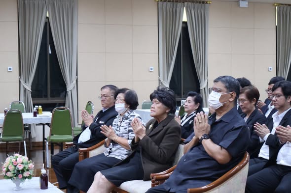 การจัดพิธีในครั้งนี้ มีคณะผู้บริหาร คณาจารย์ ศิษย์เก่า และแขกผู้มีเกียรติเข้าร่วมอย่างพร้อมเพรียง โดยช่วงเช้าเป็นพิธีสงฆ์ พระภิกษุสงฆ์จำนวน ๙ รูป สวดพระพุทธมนต์ ถวายเครื่องไทยธรรม และถวายภัตตาหารเพล