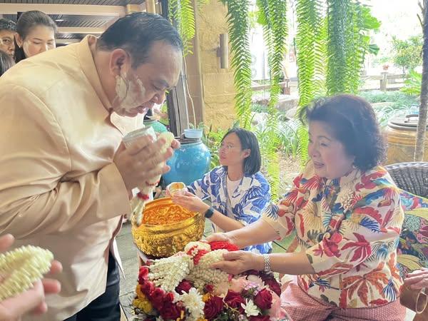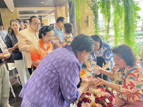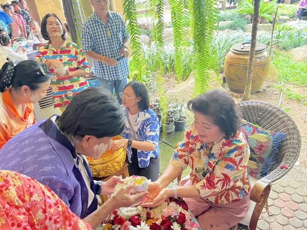 รศ.ดร.สมบัติ คชสิทธิ์ อธิการบดี พร้อมด้วยคณะผู้บริหาร คณบดี ผู้อำนวยการโรงเรียนสาธิต และคณาจารย์ ร่วมรดน้ำขอพรมอบพวงมาลัยดอกไม้แก่ท่าน ส.ส.ขวัญเรือน เทียนทอง สมาชิกสภาผู้แทนราษฎรจังหวัดสระแก้ว เขต 1 ในฐานะนายกสมาคมศิษย์เก่ามหาวิทยาลัยราชภัฏวไลยอลงกรณ์ ในพระบรมราชูปถัมภ์ เนื่องในโอกาสเทศกาลวันสงกรานต์ และวันขึ้นปีใหม่ไทย ประจำปี 2568 ณ บ้านสวนน้ำเขาฉกรรจ์ จังหวัดสระแก้ว