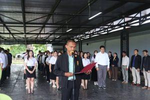 นำกล่าว ถ้อยคำกล่าวน้อมรำลึก โดย ผู้ช่วยศาสตราจารย์ ดร.ชัยวุฒิ เทโพธิ์ รองอธิการบดี ตัวแทนนักศึกษาใหม่ นำกล่าวคำปฏิญาณตนต่อหน้าพระบรมฉายาลักษ