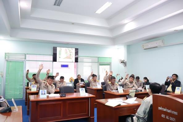 ผศ.ดร.ชัยวุฒิ เทโพธิ์ รองอธิการบดี พร้อมด้วย อาจารย์วราวุฒิ คำพานุข หัวหน้างานบริหารทั่วไป ร่วมประชุมสภาเทศบาลตำบลท่าเกษม สมัยสามัญสมัยที่ 2 ครั้งที่ 2 ประจำปี 2568 เพื่อชี้แจงประกอบการขอถอนสภาพที่ดินสาธารณประโยชน์แปลง “บ้านทุ่งพระ” และการพิจารณาให้ความเห็นชอบในการดำเนินการขออนุญาตเข้าทำประโยชน์ในเขตป่า