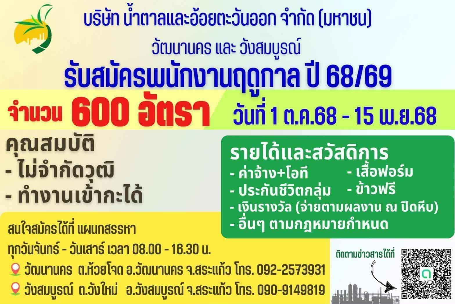 📣บริษัท น้ำตาลและอ้อยตะวันออก จำกัด (มหาชน) วัฒนานคร แล