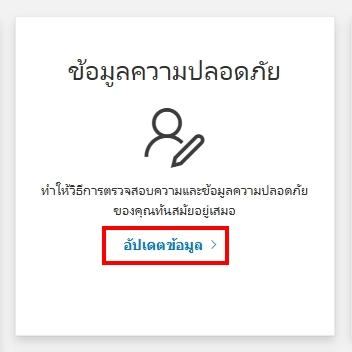 2. ตั้งค่าการยืนยันตัวตน: ส่วน ข้อมูลความปลอดภัย โดยเลือก “อัปเดตข้อมูล”